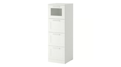 Si te gustan más las estructuras verticales o no tienes mucho espacio en casa, esta cómoda se convertirá en tu mejor aliada. Además, el cajón superior con el frente de vidrio esmerilado le aporta un toque original.