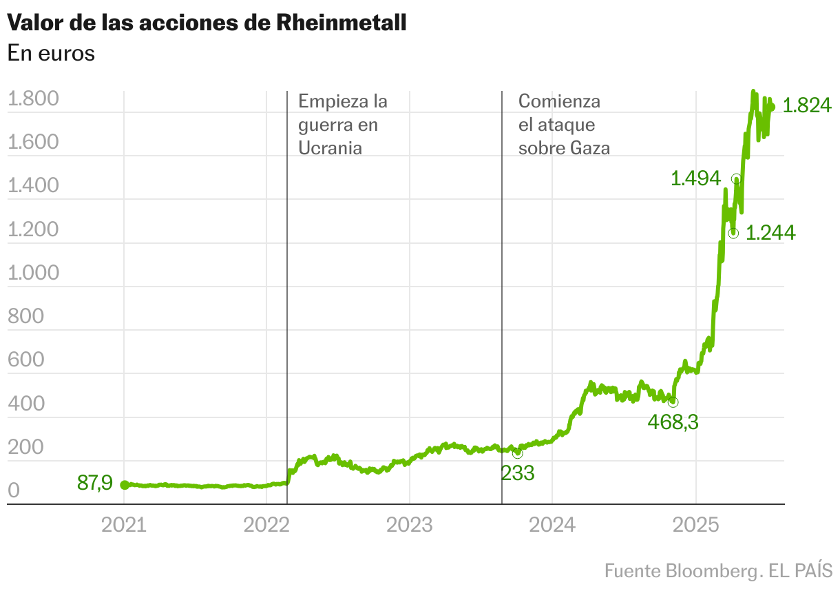 El mundo vive una fase de fuerte expansión del gasto militar. Según datos recopilados por el Instituto Internacional de Estocolmo de Investigación para la Paz (SIPRI, por sus siglas en inglés), en 2024 la inversión global en ese sector fue de unos 2,7 billones de dólares (2,3 billones de euros), una cifra a medio camino entre el PIB de Italia y el de Francia. El incremento respecto al año anterior fue del 9%, el mayor desde el fin de la Guerra Fría. Todo apunta a que esta dinámica, espoleada por una fuerte tensión geopolítica, se acentuará en los próximos años. En ella, desempeña un papel fundamental una industria armamentística que adquiere una relevancia estratégica aún más existencial que en las últimas décadas y que encara a la vez exigencias de reconfiguración y perspectivas de fuertes beneficios. La competición está desatada.