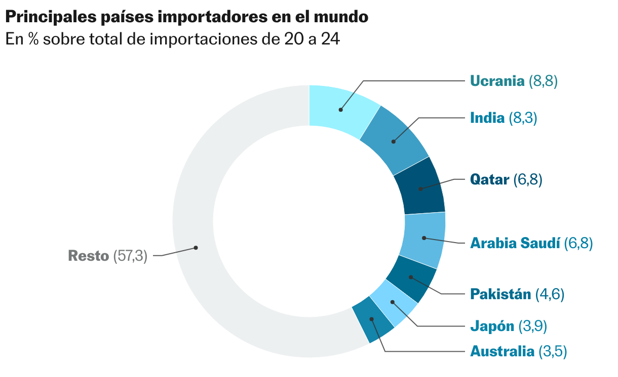 Ucrania es un país con una enorme necesidad de suministros bélicos. Su industria autóctona esté haciendo grandes progresos y en algunos sectores, como el de los drones, ya esgrime niveles cuantitativos y cualitativos excelentes. Pero en otros, como la defensa antiaérea, depende mucho del exterior. Ucrania es el primer importador mundial de armamento. Hasta 2024, EE UU era su primer proveedor, pero las reticencias de Donald Trump han alterado los flujos a lo largo de este año.