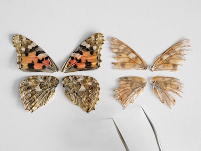 Las carderas se han desplazado así durante millones de años, pero los humanos solo nos percatamos hace unos pocos. “Lo conseguimos gracias a una gran investigación internacional”, explica Talavera. Esta empezó analizando los cuerpos de las mariposas de arriba a abajo, desde las patas hasta las alas. En las patas encontraron restos de polen y este podía darles pistas de en qué flores habían libado. Si esas eran endémicas de una zona de África o si eran muy comunes en Noruega daría una pista de por dónde habían pasado.