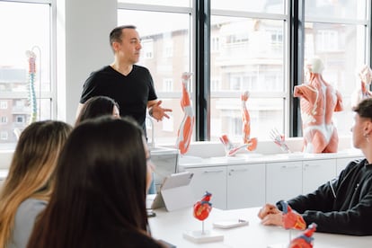 Raiza termina su cóctel tras la barra y Simone se acerca para aportar un toque final. Es un momento de verdadera conexión: introducir un garnish —acompañamiento o adorno, en jerga coctelera— en la bebida creada por un colega. La complicidad entre Raiza y Simone es evidente. Intercambian ideas, bromean entre ellos y recuerdan cómo se conocieron en un encuentro para visibilizar la realidad LGTBQ+ en el mundo del cóctel. Simone remata el Midnight Sun con una hoja de plátano —”para darle un toque herbáceo”— y un bombón de coco y almendra. “La idea es que, entre trago y trago, se dé un mordisco al bombón para potenciar el sabor”. Raiza paladea la combinación y asiente: “Le queda perfecto”. Prueba superada.