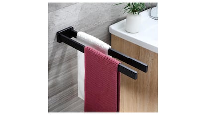 Este toallero ofrece capacidad para colocar dos prendas textiles, por lo que es perfecto para optimizar el espacio. El acabado negro cepillado aporta un aire moderno y combina con cualquier paleta neutra.