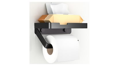 Este accesorio integra un portarrollos y un compartimento adicional en la zona superior para colocar toallitas húmedas. Es resistente a la corrosión y a la oxidación, y se puede instalar tanto con tornillos como con adhesivos.