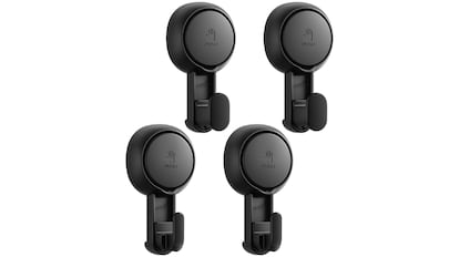 Perfectos para colgar toallas, albornoces o accesorios de baño. Su sistema de ventosa de alta sujeción no requiere taladro y puede reutilizarse en distintas superficies. El acabado negro refuerza la uniformidad del conjunto.