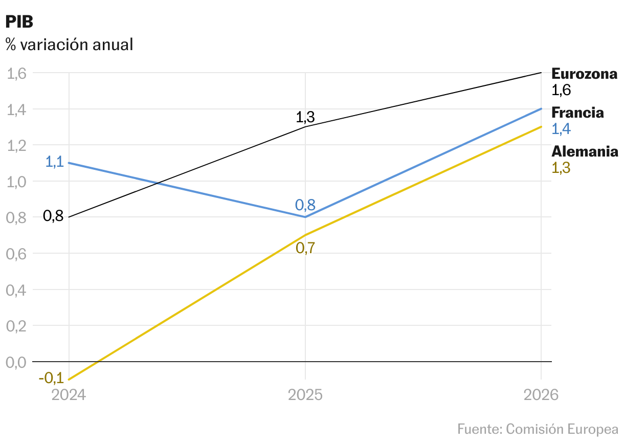 “Tenemos un problema en la UE. Alemania tiene un déficit inversor y no veo consenso político y social para corregirlo. Francia necesita un ajuste creíble a medio plazo”, lanzaba hace unos días el economista Daniel Fuentes, profesor de la Universidad de Alcalá de Henares y buen conocedor del país al norte de los Pirineos. Él es el autor de esa expresión de las “crisis espejo” que viven los dos grandes de la Unión y que dificultan tomar decisiones cuando es necesario desplegar las recetas encargadas a los ex primeros ministros italianos, Mario Draghi y Enrico Letta, para que Europa no pierda más competitividad frente a Estados Unidos y China.