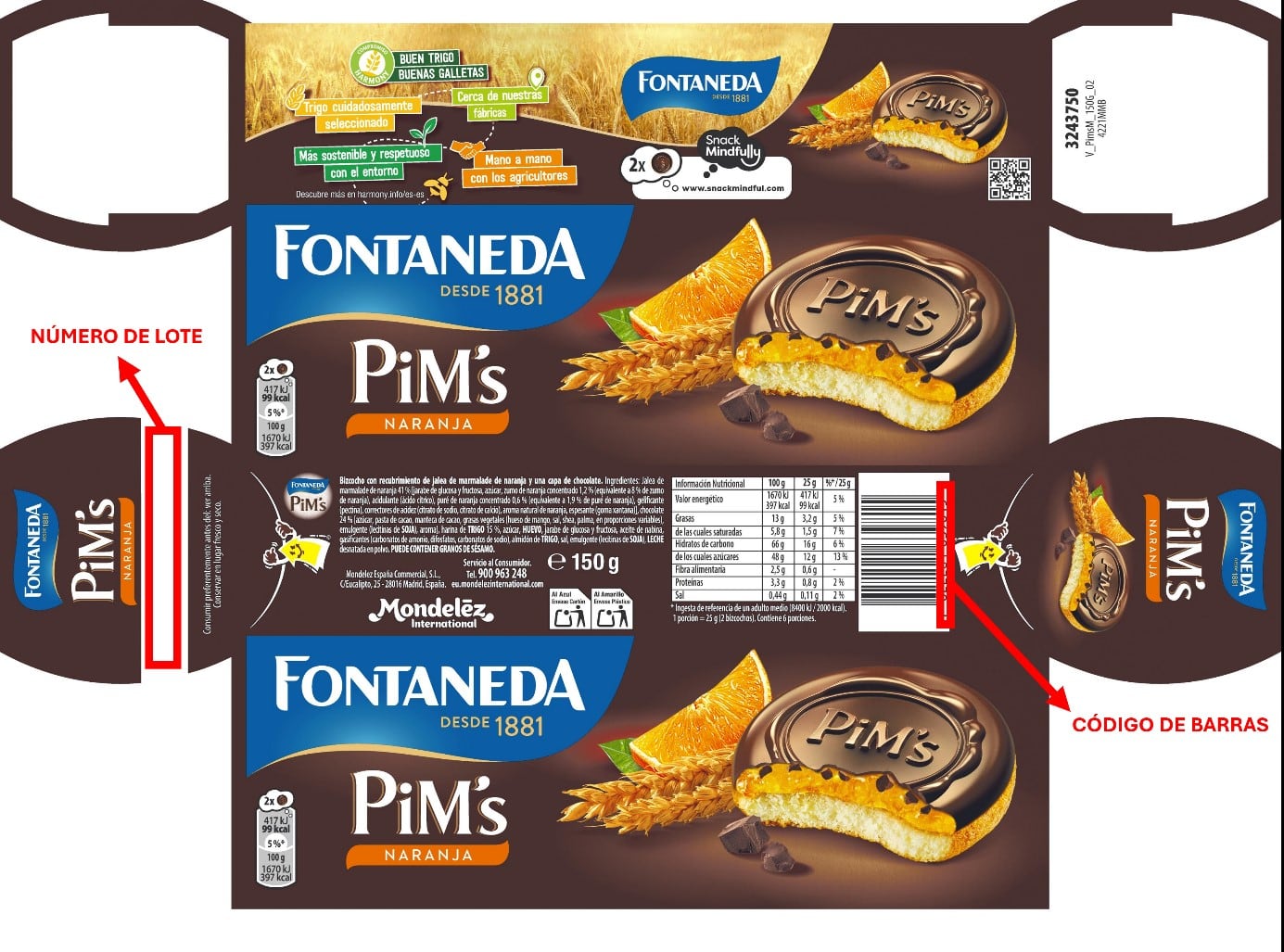 La Agencia Española de Seguridad Alimentaria y Nutrición (Aesan) ha lanzado este lunes una alerta por la posible presencia de partículas metálicas en las galletas Pim’s Naranja de la marca Fontaneda, y ha recomendado a las personas que tengan este producto en sus hogares que no lo consuman. La empresa ha comunicado la incidencia a las autoridades competentes, informando de que el producto se presenta en un paquete de cartón y formato de 150 gramos, con número de lote OHT1153212, código de barras 7622201639815, fecha de consumo preferente a 30 de abril de 2026 y de conservación a temperatura ambiente.