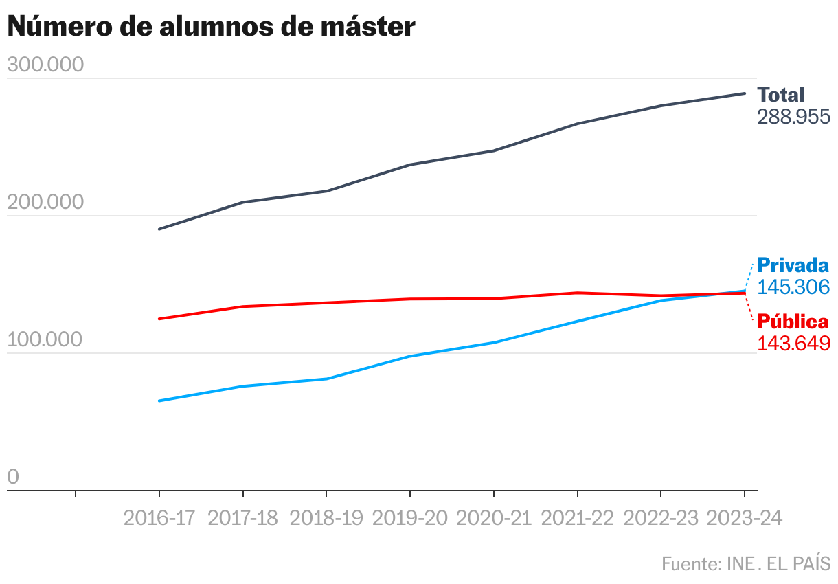 En la Universidad de Oviedo, la de este decano, han pasado de llenar 100 plazas a 60 en un posgrado presencial. En 2023 (últimos datos oficiales), los campus online Internacional de La Rioja, UNED (pública) e Internacional Valenciana sumaron entre los tres 3.300 inscritos, cuanto la oferta total para este septiembre es de 12.500.