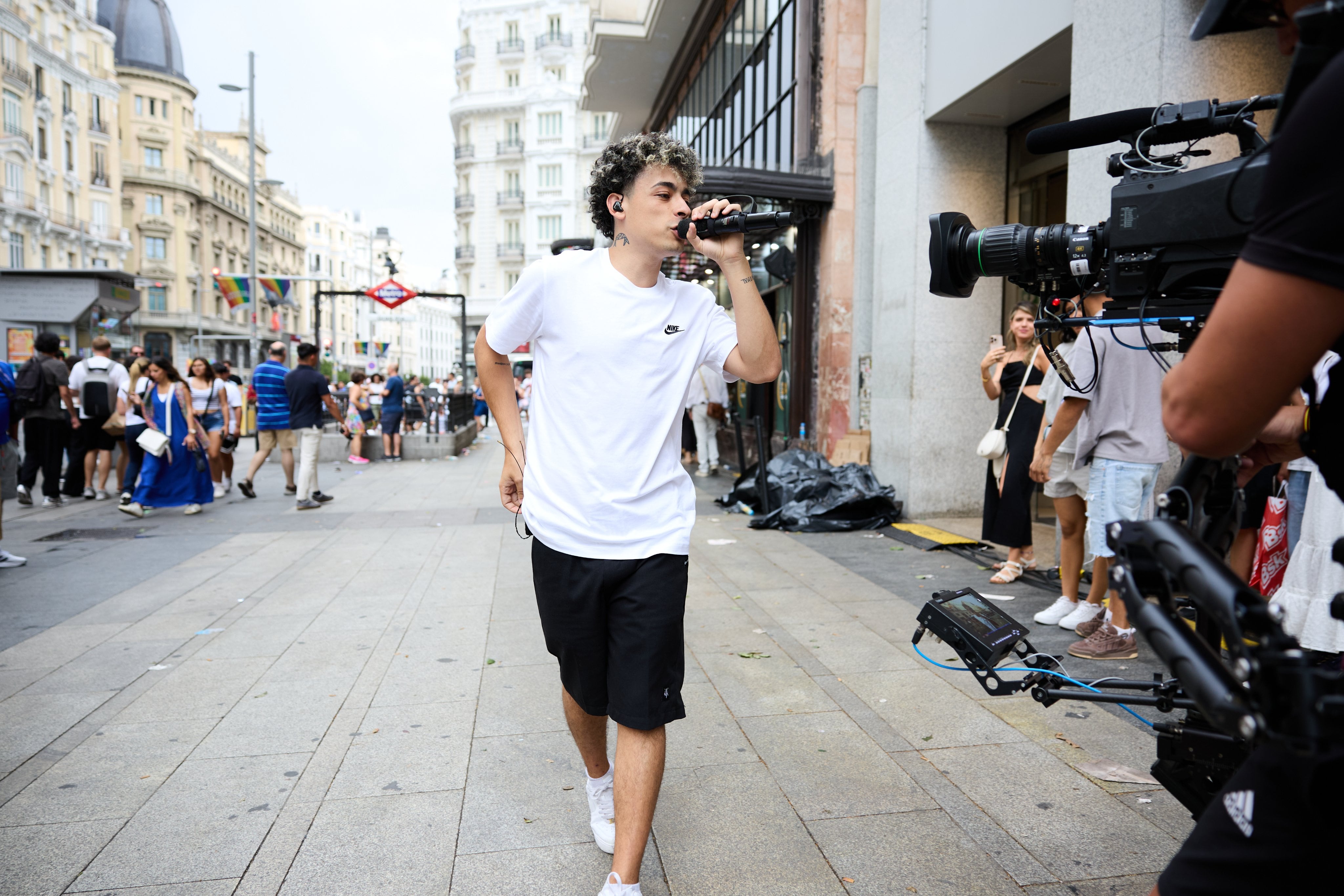 Mateo Palacios Corazzina, de 23 años, conocido por su nombre artístico Trueno, es un habitual entrevistado de Broncano y en esta nueva visita a España ha protagonizado un momento hasta ahora inédito en La revuelta. El programa no había arrancado nunca antes directamente con una actuación musical, que además ocurrió en la calle.