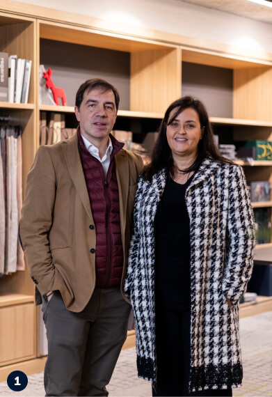 1. Cecilia Lázaro, socia fundadora y directora de Proyectos de Office Design (dedicado al diseño de oficinas) y Cecilia Caro (centrado en los hogares) junto a Alberto Blázquez, director de Ventas de Office Design.