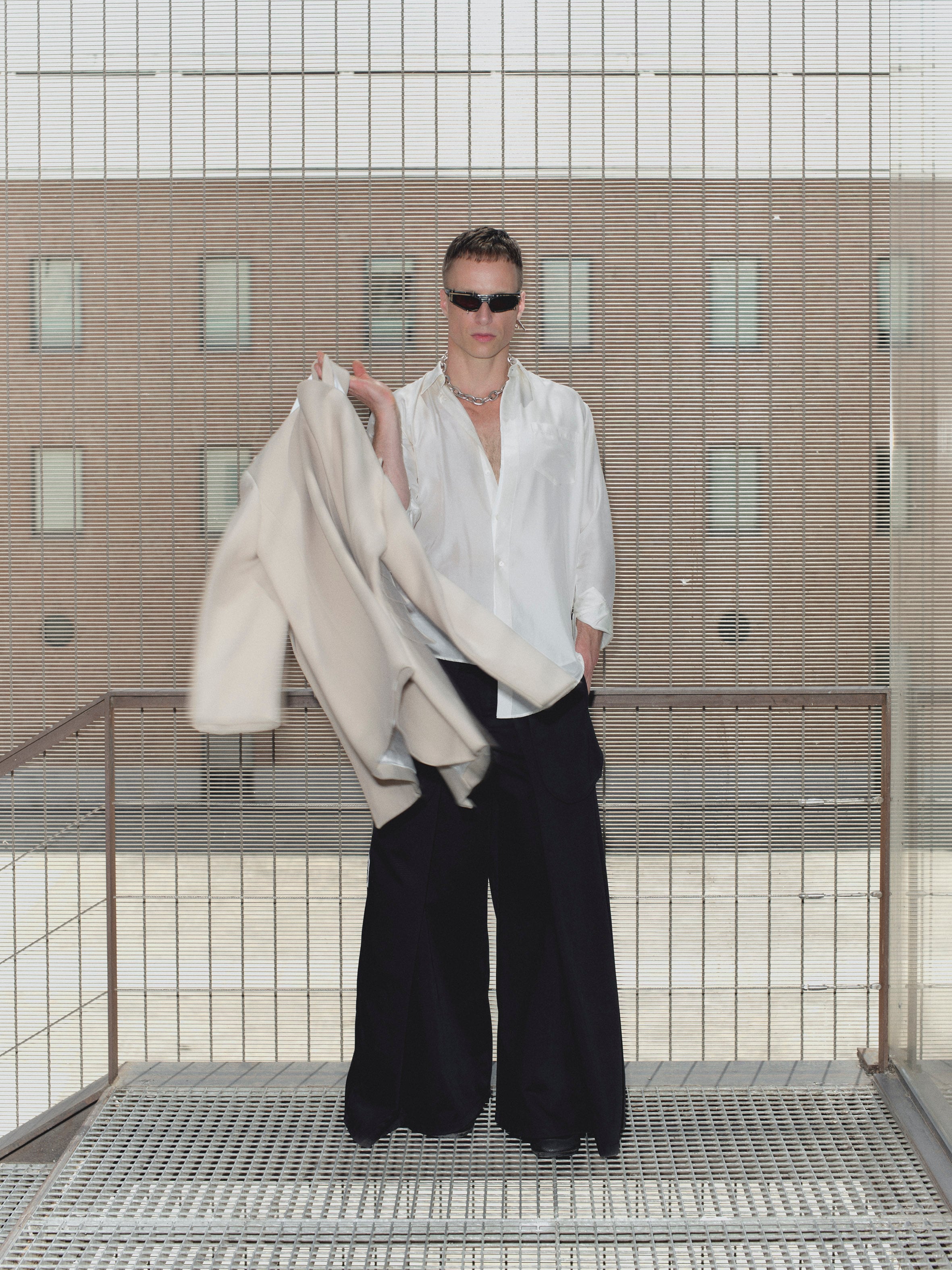 “Empiezo a entrar en el espectáculo cuando me visto. Intento que la ropa que elijo tenga mucha intención. Me ayuda a meterme en el personaje”. Utiliza cuatro micrófonos. Algunos rodean el instrumento para amplificar el sonido de los dedos, que suenan casi como una máquina de escribir tocando techno. Otro, colocado en la garganta, capta su voz al tocar, junto con gruñidos, zumbidos y gemidos. En lugar de ocultar los fallos o los mecanismos internos del saxofón, los pone en primer plano. Su cuerpo es parte esencial de su forma de soplar, basada en la respiración circular: una técnica que permite mantener un flujo continuo de sonido, respirando por la nariz mientras, al mismo tiempo, empuja aire desde las mejillas. “Es casi un estado alterado de conciencia, en el que es más fácil volverse receptivo y estar presente. Un estado de hiperfocalización”, explica.
