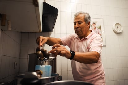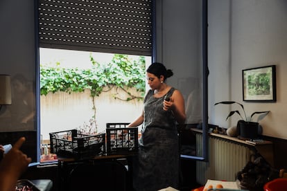 En realidad, lo más importante de este taller no es probar el makdous, sino conocer lo que hay detrás de su materia prima. Estas berenjenas han crecido en Madrid, pero sus semillas proceden de Palestina y han viajado hasta aquí sorteando todos los obstáculos imaginables. “Las semillas contienen conocimiento, si las perdemos, perdemos ese conocimiento. Es otra forma de genocidio”, explica Shayma, que llegó a la capital en el verano de 2024 y que, desde principios de año, fue acogida por Campo Adentro como parte del equipo.