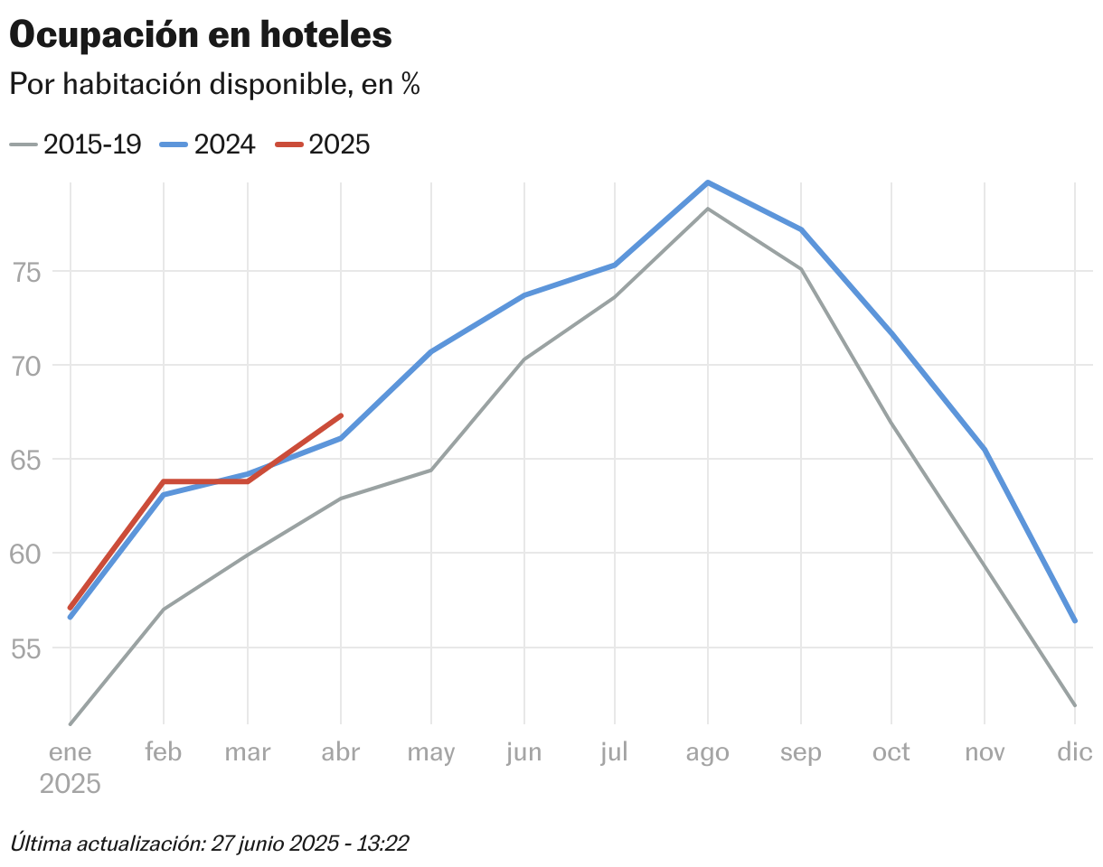 No solo los españoles son presa del encarecimiento vacacional. El pasado mayo ya se apreció en los turistas alemanes y franceses, segundo y tercer países emisores de visitantes (aunque en los cinco primeros meses de 2025 se han intercambiado las posiciones tradicionales), recortaban más de un 6% sus viajes a España, si bien el conjunto de extranjeros crecía un 1,5%. También se detecta que los alojamientos hosteleros bajan un 1,7% mientras la vivienda en alquiler gana un 14,8% del mercado.