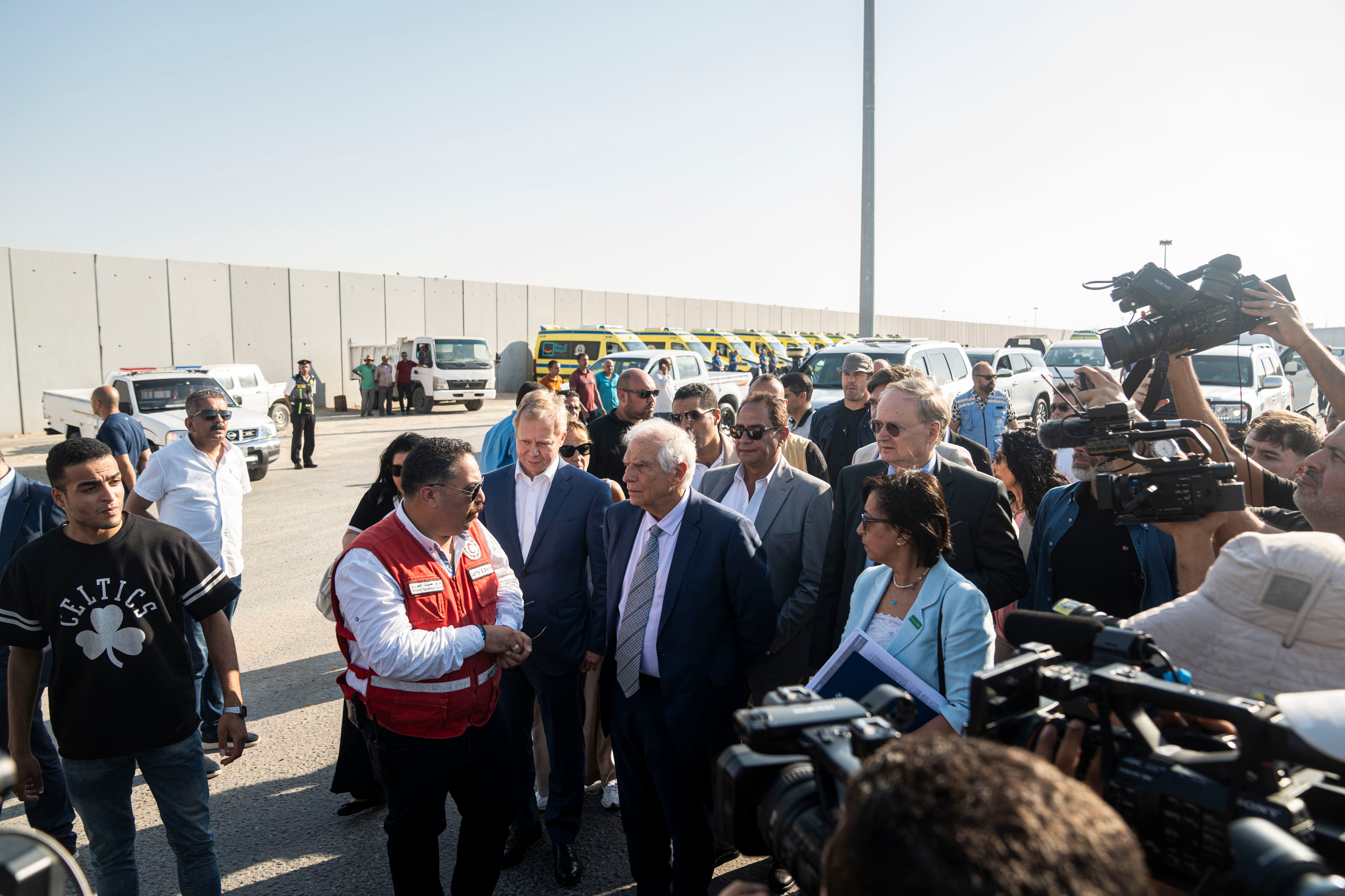 Casi todo ha girado en torno a las trabas a la entrada de ayuda humanitaria a Gaza. Lo pedía el lugar, con sus filas interminables de camiones parados, sus palés con material para la Franja bloqueado por las autoridades israelíes por considerarlo de doble uso (tiendas de campaña con metal, cajas de madera, filtros potabilizadores…). Es en lo que el alto representante centró sus preguntas, durante su recorrido entre la ciudad de El Arish, donde aterrizó desde El Cairo en un avión militar, hasta Rafah, tras reunirse por la mañana con Al Sisi; el ministro egipcio de Defensa, Abdel Meguid Sakr, y el jefe de los servicios de inteligencia, Abbas Kamel.