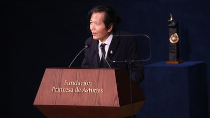 En su periplo por Asturias solo ha dado una entrevista, y no la ha concedido, sino que la ha solicitado. EL PAÍS acudió el pasado viernes, la mañana antes de la ceremonia, al hotel Reconquista de Oviedo, sobre cuyas alfombras señoriales formaban corrillos galardonados, autoridades y periodistas, para escuchar a Han y verle las manos: tiene unas manos finas.
