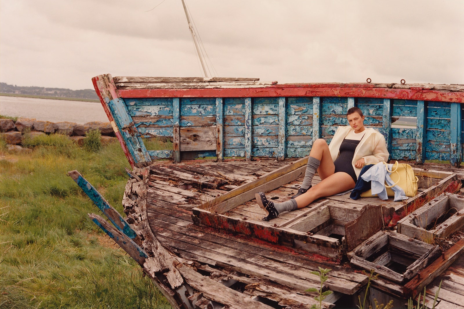 Otra opción es dejar el color rojo para los calcetines y sumarlos a un look de tonos neutros. La superposición de prendas en este caso es tu mejor aliada, como un top de manga larga gris combinada con un vestido tipo pichi largo puede ser una buena opción. Otra alternativa pasa por dar un giro a la estética boho con un vestido estampado combinado con una bomber. Unos calcetines de este tono se combinan con unos mocasines marrones de tacón.