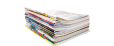 Todo al azul. Son envases de papel. No importa el color, si son más finos o gruesos. Incluso si es un papel muy pequeño. Todo desecho de papel y cartón se debe depositar en el contenedor azul. Las revistas y periódicos que se compran en las estaciones o en los aeropuertos también van al azul si uno se quiere deshacer de ellos.