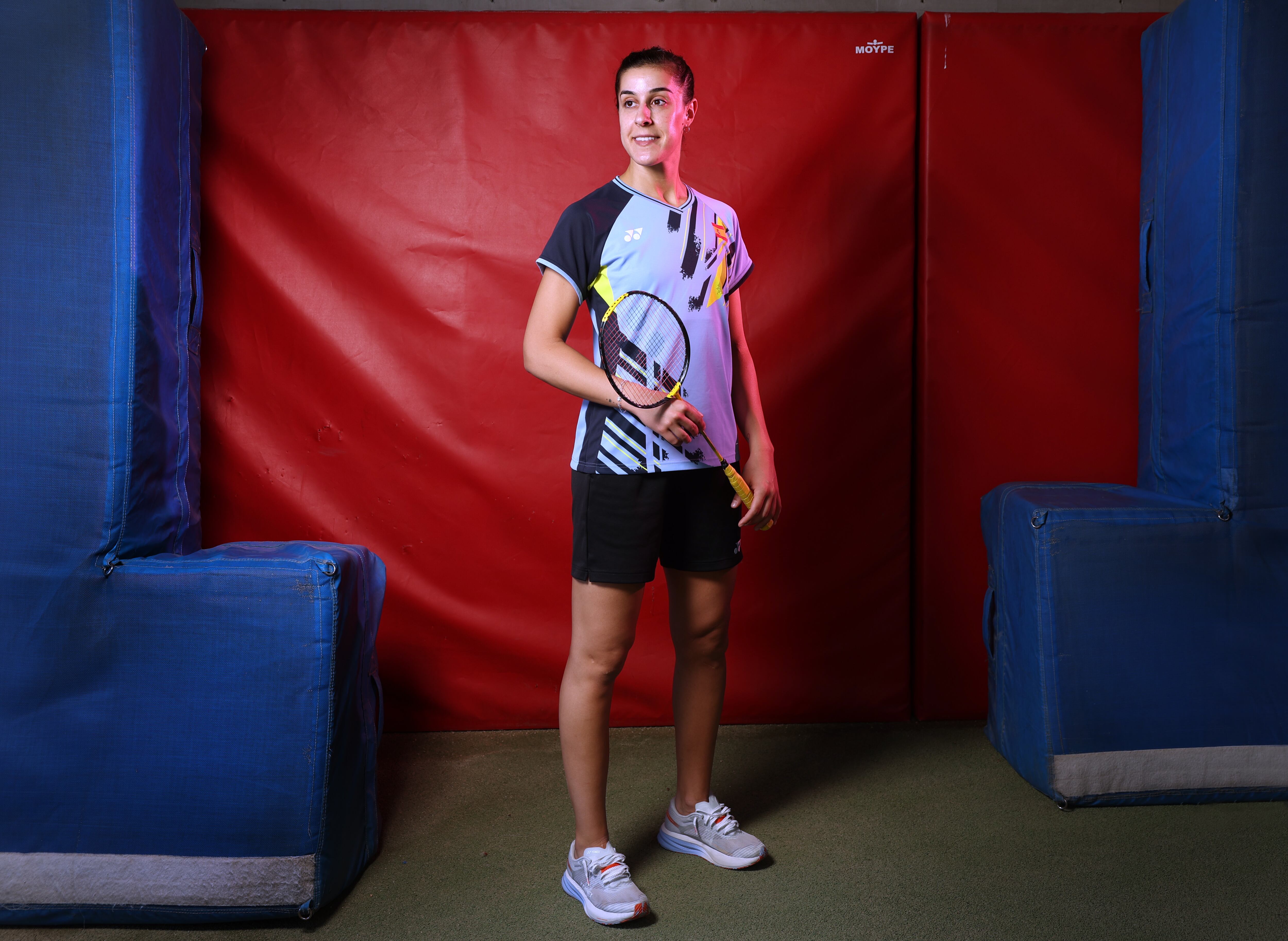 El volante de pluma de ganso vuela de raquetazo en raquetazo sobre la pista del pabellón de la Residencia Blume, en Madrid. De un lado de la red, Carolina Marín (Hueva, 1993) maneja su herramienta como si empuñara un escalpelo; del otro, dos hombres, integrantes del equipo nacional, intentan llevarla al límite del agotamiento sin conseguir que sea ella quien finalmente acabe poniéndolos a ellos en dificultades irresolubles. Acabada la sesión, recibe a las visitas en el gimnasio adyacente a la pista, que equivale al salón de su casa. Después de romperse las dos rodillas y perderse los Juegos de Tokio, la campeona más esotérica de la historia del deporte español está de vuelta en plena forma para intentar el asalto al oro en el campeonato de bádminton que comienza el próximo día 27 en los Juegos de París.