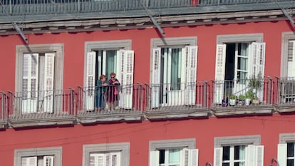 El día es tranquilo y hay poca gente: un equipo de rodaje de una serie, una pareja de suecos, una madre y una hija llegadas de México. “Estas vistas compiten con las del Hotel RIU de Plaza España, no hay gin tonics, pero subir son solo cuatro euros, es mucho más barato, claro”, asegura.