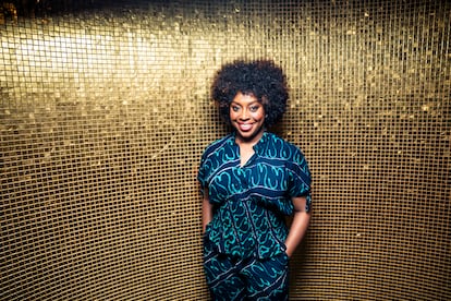 Tras más diez años sin escribir ficción (ella es supersticiosa y no quiere nombrar la palabra bloqueo), y tras convertirse, entre otras cosas, en un icono feminista, Chimamanda regresa con una novela, Unos cuantos sueños (Random House), en la que cuenta las vidas cruzadas de cuatro mujeres africanas. Se prepara para responder a la primera pregunta cuando llega el camarero, que le pregunta que qué quiere. “Pues no sé, ¿qué se toma aquí a esta hora?”. “Pues a la una, cerveza o vermut”, le responden. Ella se ríe soltando una carcajada que resuena en toda la cafetería. “No, no, tráigame un zumo de piña ¿No toman aquí zumos de piña?”. “Sí, pero para desayunar”, le vuelven a responder. Y se vuelve a reír, con la misma risa contagiosa.