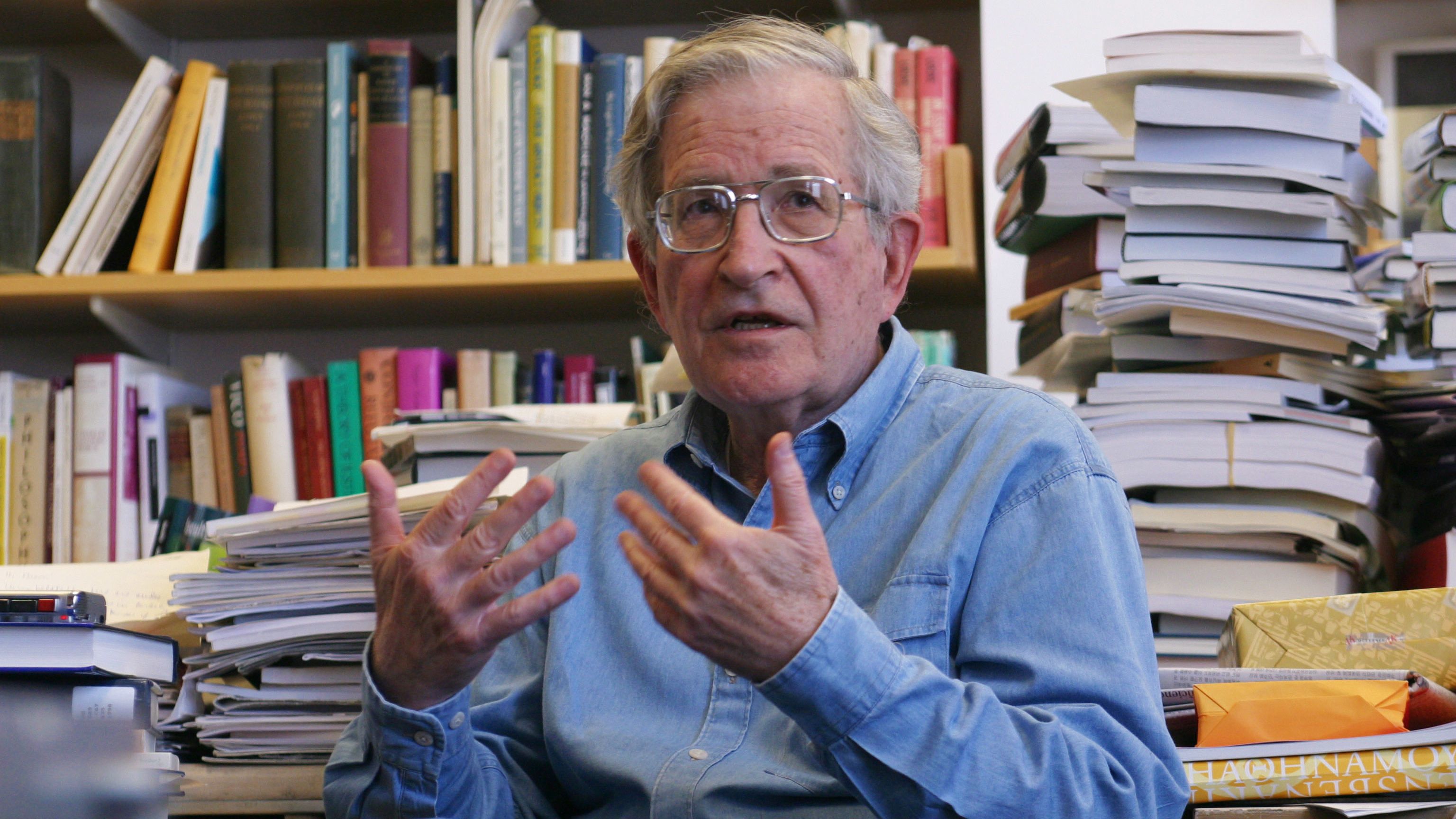 El diario brasileño ofrece algunas pinceladas de la vida cotidiana del anciano profesor: lee a diario la edición digital The New York Times y revistas científicas sobre lingüística. Levanta el brazo izquierdo en un gesto de lamento o enfado ante las noticias sobre la guerra de Gaza —el ictus le ha impedido pronunciarse públicamente sobre el capítulo más reciente del conflicto entre Israel y los palestinos—. Antes del accidente vascular cerebral el veterano profesor seguía muy activo, participando del debate público, publicando artículos, escribía, daba clase, conducía…