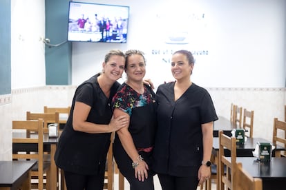 Cada mañana, el vendedor de cupones de la ONCE come pipas con mucha paciencia en la terraza de Las Adelfas. No tiene prisa. Es consciente de que las ventas irán cayendo por su propio peso porque a su lado la afluencia de personas es constante. Este negocio se ubica en el polígono industrial de Antequera, pero parece que estuviese en pleno centro. En su interior el ambiente es animado y ruidoso. Hay una tele sin voz, frases tipo Mr. Wonderful en las paredes —“No hay mal que cien años dure ni pena que un buen desayuno no cure”— y en la barra no suele haber hueco. Las mesas están ocupadas por grupos de operarios de carreteras, trabajadores de las naves cercanas, familias, mayores que piden una gotita de anís Machaquito seco para endulzar su café. El local está dirigido desde hace tres décadas por la familia Pozo Molina, cuya segunda generación está hoy al frente: las hermanas Ana Belén, María Jesús y Eva María.