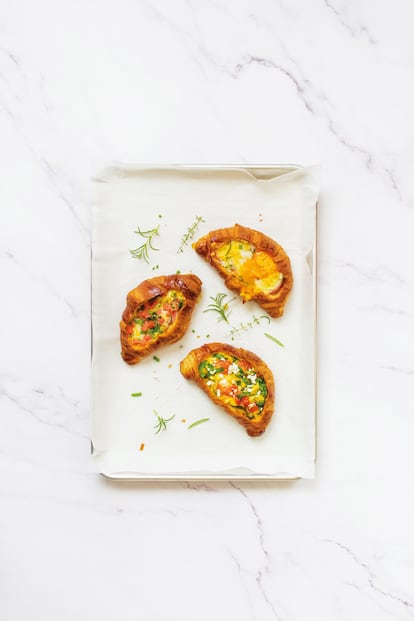 Estas son solo tres posibilidades de las infinitas que puedes preparar. “Si te gustan los cruasanes salados, explora otras opciones con tus ingredientes favoritos”, anima la autora.