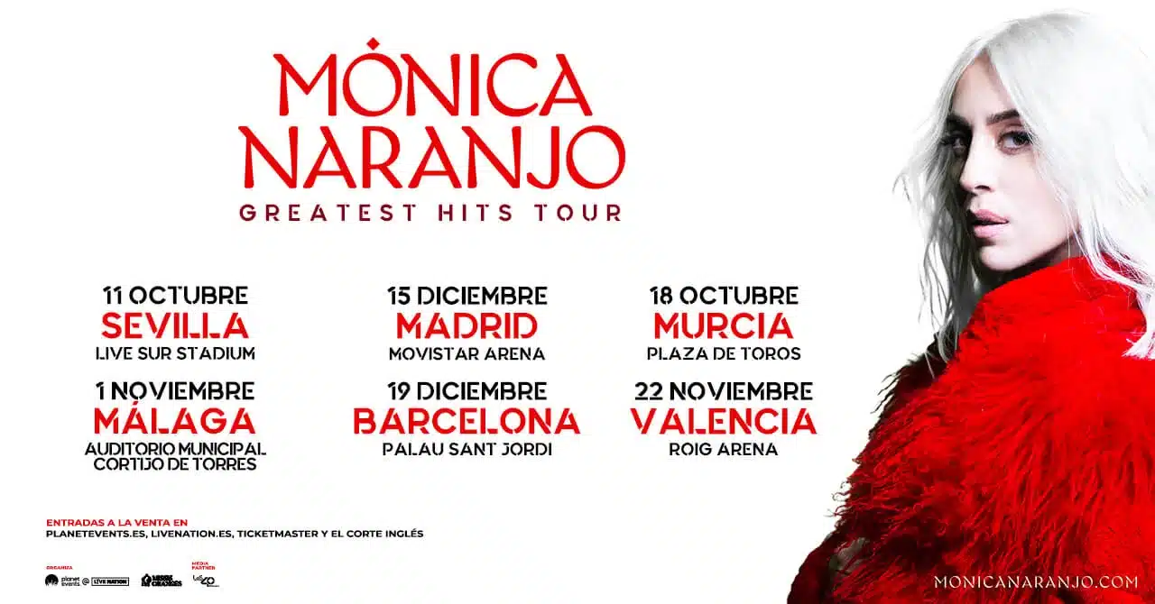 Mónica Naranjo ha confirmado por ahora conciertos en Sevilla, Murcia, Málaga, Valencia, Madrid y Barcelona. Estas son las fechas:
