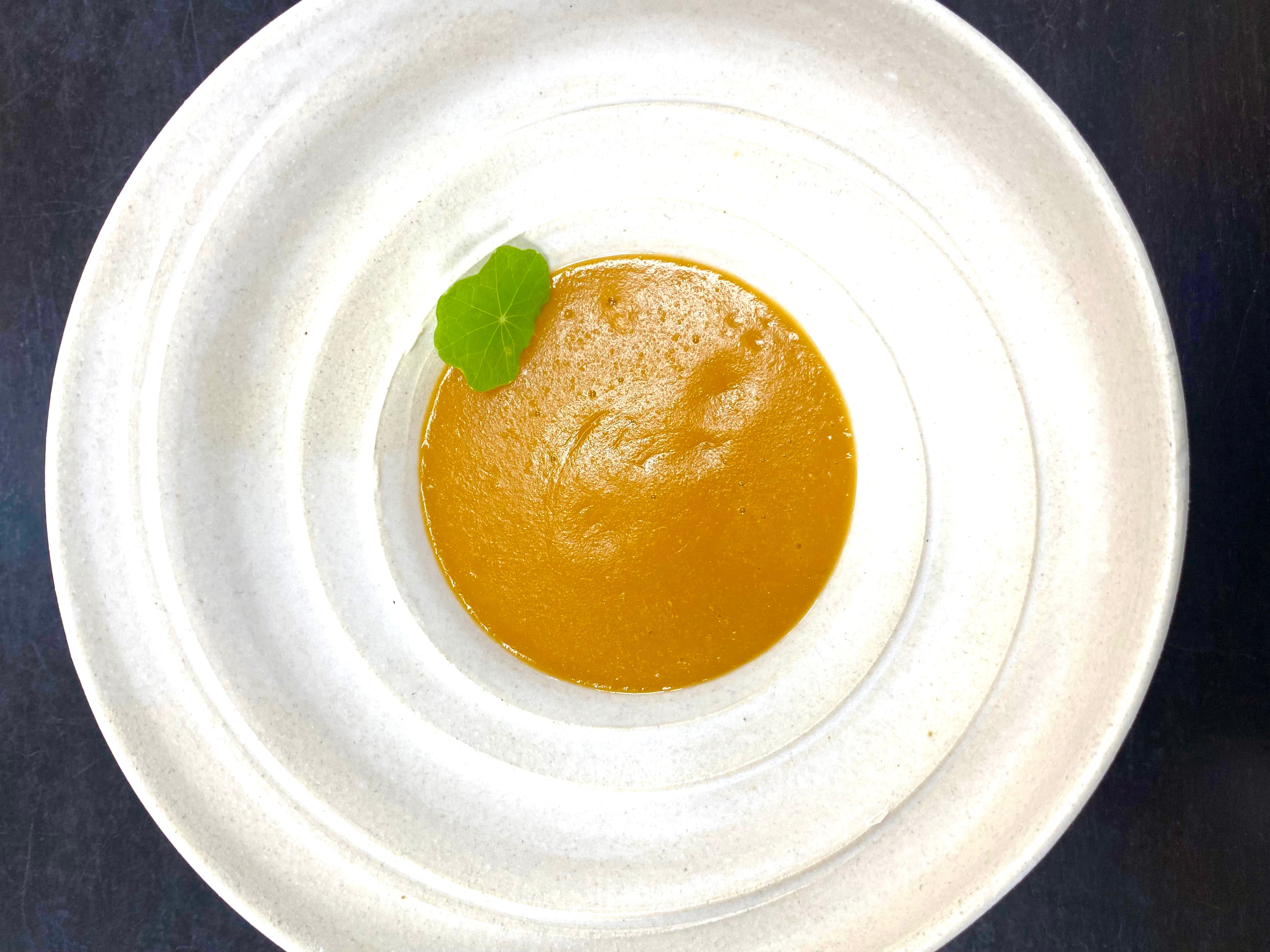 Colocar la cigala racionada y los berberechos en un recipiente sopero o en un plato y verter encima la crema (a mí me gusta que los “tropezones” se oculten con la crema para provocar sorpresa en el comensal).