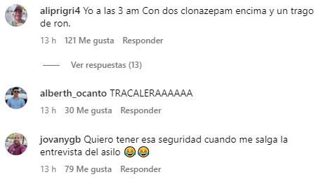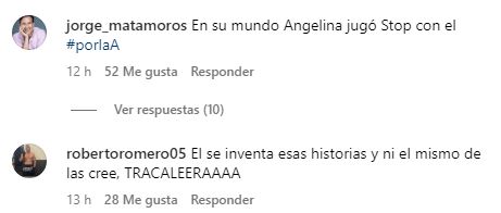 “Yo a las 3am con dos clonazepam encima y un trago de ron”, “En su mundo Angelina jugó Stop con él”, “Quiero tener esa seguridad cuando me salga la entrevista del asilo”, “Pero sí existió la foto en modo real o modo PowerPoint”, fueron algunos de los mensajes.