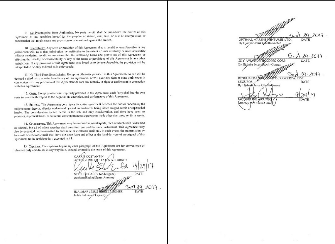 El acuerdo, suscrito por Gibelli Gómez tanto a título personal como en representación de las firmas Optimal Marine Ventures Ltd. (OMV), Sky Aviation Holding Corp. (Sky) y Resguarda Sociedad de Corretaje de Seguros C.A., representa el cierre total de las causas abiertas por las autoridades estadounidenses. Con este paso, el empresario y sus entidades representadas quedan libres de obligaciones pendientes con el sistema de justicia de ese país.