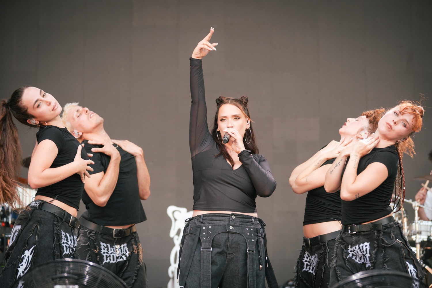 La organización, al loro de todo esto, se ha preocupado en habilitar diferentes formas de combatir el calor. Además de los puntos de hidratación, sorprendió la presencia de ventiladores de agua en la entrada del recinto principal. Como los de los bares, pero el triple de grandes. Aun así, llegar tarde al concierto de Lia Kali después de esperar bajo el sol en la cola para entrar al festival era algo que podía pasar. Y así pasó. Mientras hacíamos cola para recargar la pulsera y refrescarnos un poco, la artista catalana se preocupaba constantemente porque su público no se muriese de calor.