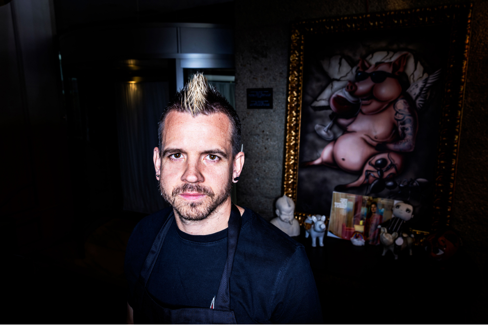 Una cosa es el restaurante y otra, él. De hecho, Muñoz ha reiterado en muchas ocasiones que no se siente el mejor cocinero del mundo, a pesar de varios hitos: encabezar en 2023, por tercer año consecutivo, la lista de los 100 mejores chefs a nivel mundial, según The Best Chef Awards; tener cuatro estrellas Michelin y cuatro soles Repsol —en ambos casos, tres por su restaurante DiverXO y una por RavioXO—; o haber sido el acompañante elegido por el multimillonario CEO de Apple, Tim Cook, en una visita que hizo por el Madrid más castizo (de hecho, compartieron un cocido). Los reconocimientos los “olvida” al día siguiente: “Aunque los agradezco, tiendo a no darles tanta importancia. Hacemos tantas cosas que no me da tiempo a disfrutar de todo lo bueno que nos pasa”, reconoce con el gesto sobrio en esta entrega de Talento a bordo, el proyecto de Iberia para visibilizar el talento en español. Es lunes, jornada de cocina sin clientes, por eso está sosegadamente sentado a mediodía en la sala vacía de DiverXO, un local en el que la imagen de un cerdo alado se repite en los cuadros y figuras que lo decoran.