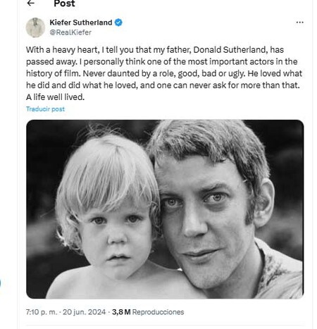 Muere a los 88 años Donald Sutherland, actor icónico del Hollywood moderno en clásicos como 'Doce del patíbulo' o 'La invasión de los ultracuerpos'