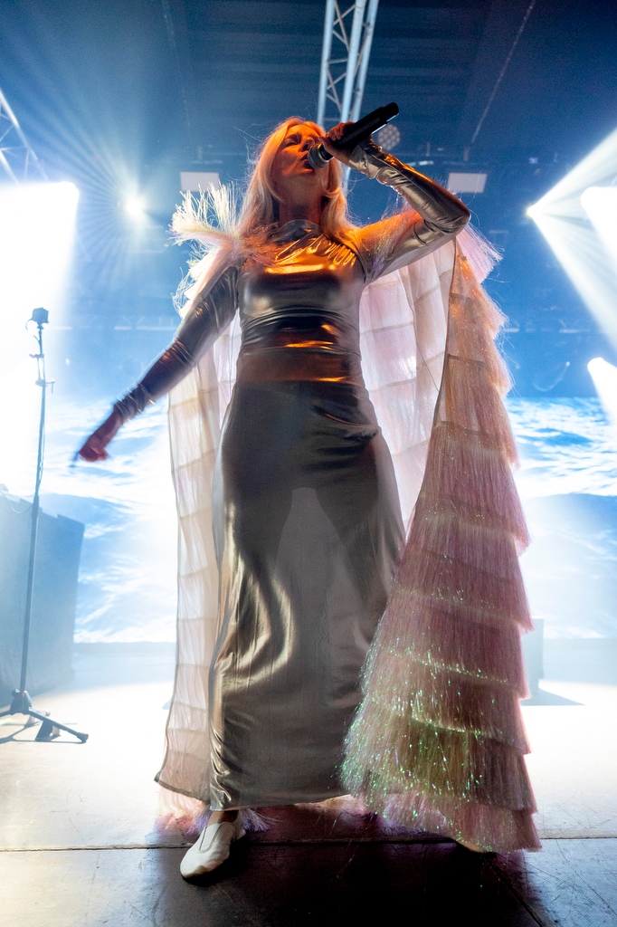 Acompañada por dos músicos, Claes Björklund (su productor y colaborador habitual) y John Strandh, ionnalee recrea ‘BLUE’ en directo mientras se proyectan los visuales originales de cada canción (‘BLUE’ era también un álbum visual). Jonna entra en escena cubierta con una capa de plumas y, al retirarla, revela un mono azul metálico similar al del vídeo de ‘Hunting for Pearls’. El inicio épico con ‘Fountain‘ se transforma rápidamente en baño de masas cuando los beats se aceleran en ‘Tap Your Glass’ y, sobre todo, en ‘Chasing Kites’, el punto álgido de la noche.