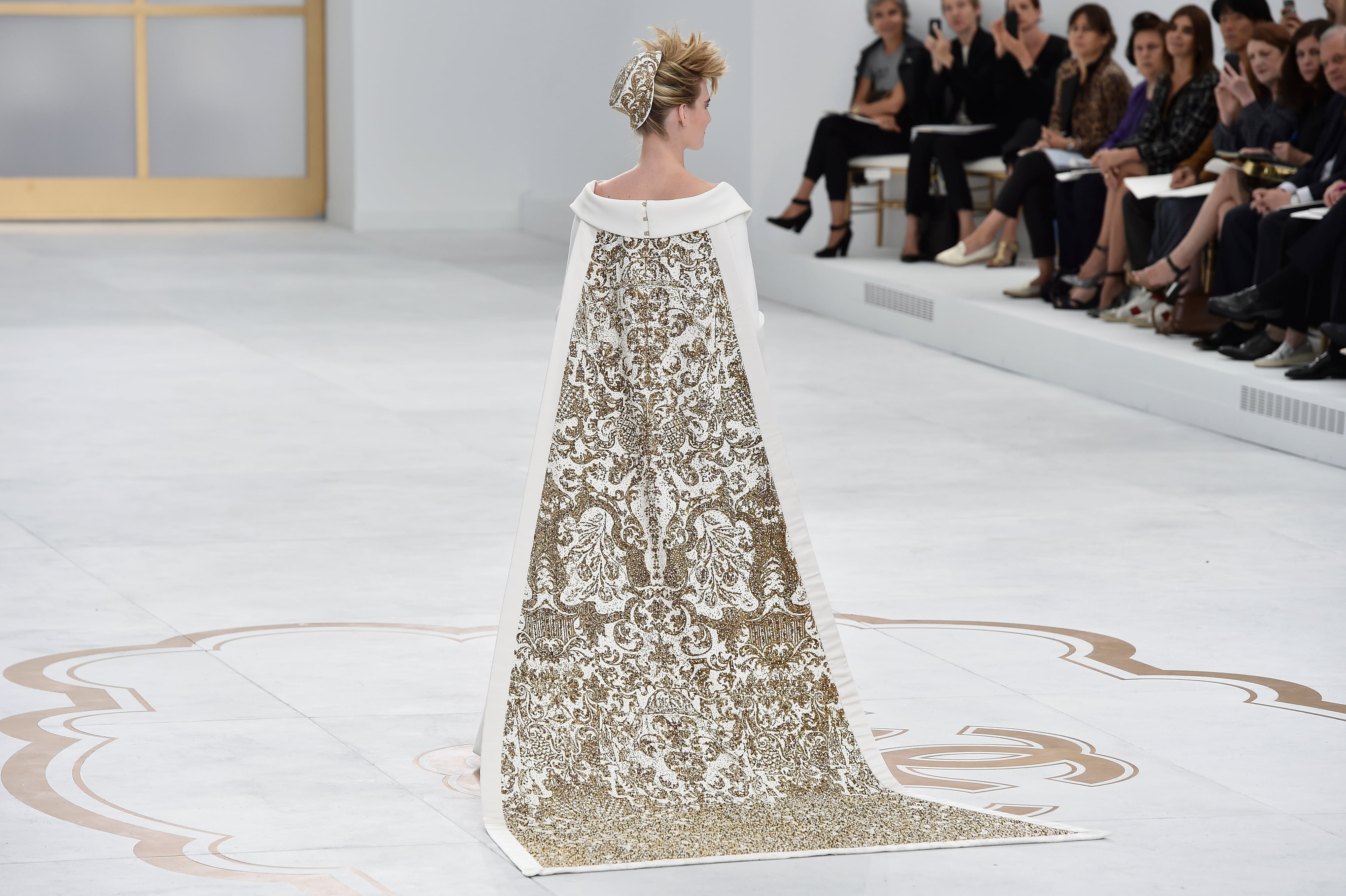 En el Grand Palais de París, la novia entra como si entrara a una iglesia. Su vestido es grandioso e interminable. La top model Ashleigh Good camina casi descalza, como una inmaculada vestida de blanco. Se gira y revela a los espectadores el rostro puro y pálido de una mujer”. Esas son las palabras que escogió la escritora francesa Anne Berest para narrar en 2015 el cierre del desfile de alta costura otoño-invierno de Karl Lagerfeld para la marca francesa de lujo Chanel. Escondía otras sorpresas. La modelo estaba embarazada de varios meses, el diseño era de neopreno y mostraba un vestido de corte emperatriz esculpido en un molde. Alta costura sin costuras. El vestido se subastó en 2023 en la casa Christie’s por 94.500 euros.