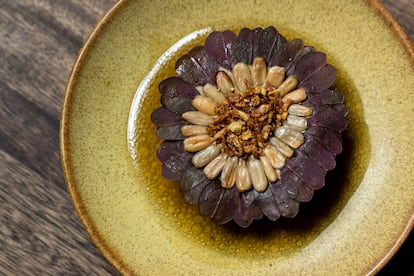 Más tarde, pasó por las cocinas de Jordi Vila, en Alkimia, hasta que hace dos años, su madre, Antonia Ferrer, dedicada a la gestión hotelera, le avisó de que el contrato de alquiler del chiringuito Sol finalizaba y le ofreció que se hiciera cargo de él. Así lo hizo. Como también poner en marcha el restaurante Sol Post, con el que pretende elevar el vuelo gastronómico en cala Saona. Para ello, se ha rodeado de dos jóvenes cocineros, ambos procedentes del restaurante Cins Sentits: el salvadoreño Mauro Rivas (29 años) y el barcelonés Armand Vidal (26), quienes dan rienda suelta y sin complejos a una cocina creativa inspirada en sus orígenes, una fusión de recetas e ingredientes centroamericanos y de la cocina catalana, combinados con productos locales. El broche dulce lo pone la jefa de pastelería, la barcelonesa Clara Campoamor (28 años), que conoció a Costa en la escuela Hoffman, y que envuelve con sutil delicadeza sus postres del aroma e influencia del paisaje de la isla.