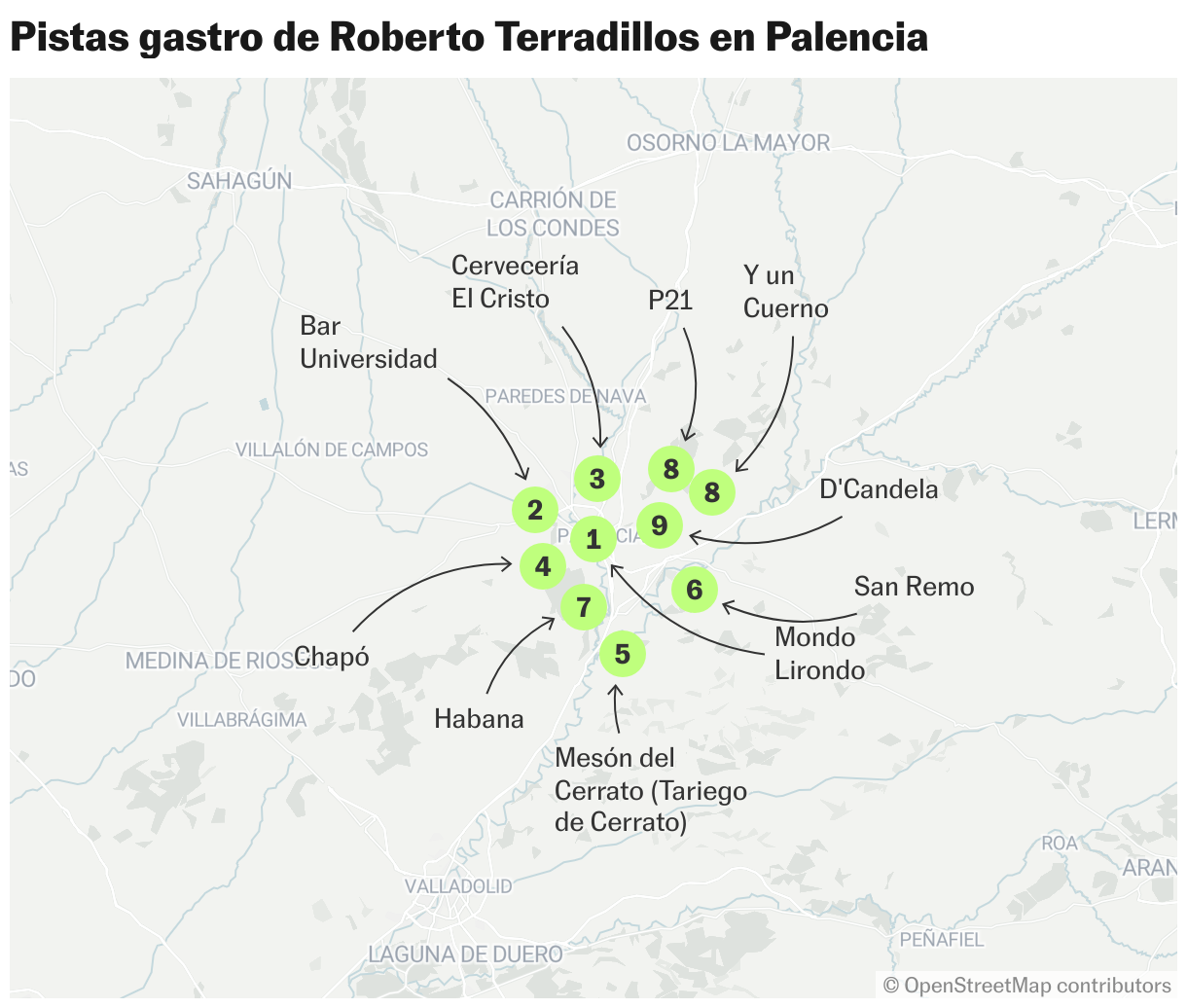 4. Le gusta frecuentar Chapó, un restaurante de corte tradicional, donde Carlos Gutiérrez y familia bordan cualquier receta clásica, sobre todo carnes. “Es mi sitio de los lunes cuando no me apetece cocinar”, dice Terradillos. Dirección: Obispo Nicolás Castellanos, 11, Palencia. Teléfono: 979 70 32 60.