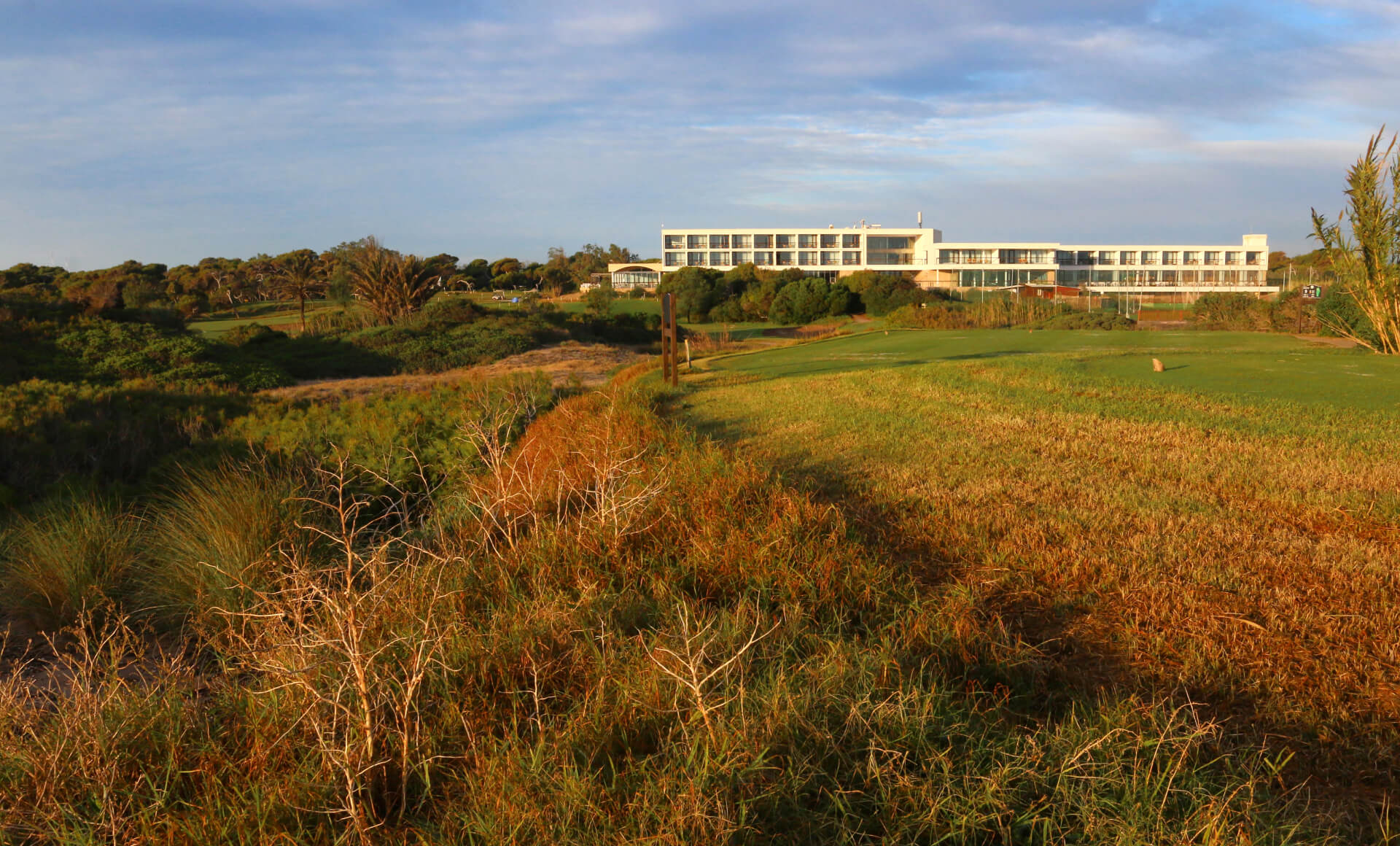 El parador se ha aliado con ONG locales como Xaloc para retirar la uña de gato, una planta alóctona, y esparcir semillas de especies autóctonas para que sus raíces sujeten las dunas, una barrera natural ante temporales marítimos. Los voluntarios que custodian en verano los huevos enterrados de la tortuga boba pueden hacer uso de las instalaciones del hotel, que también les provee de comida. Se organizan liberaciones de estas tortugas una vez curadas en el Oceanogràfic de Valencia, a donde los pescadores las han llevado tras haber quedado atrapados en las redes. Los recepcionistas disponen de una guía de aves porque si no se conserva el entorno y se da a conocer, los pájaros no vuelven. “Naturaleza. Exclusividad. Sostenibilidad”, asegura Contreras que es lo que buscan los clientes, a los que se involucra en estas actividades. “No es la temperatura, es la luz por lo que vienen”, abunda en la terraza del hotel, desde donde contrastan los colores esperados del cielo, el mar, el campo de golf propio y las dunas.