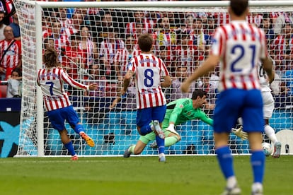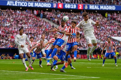 El Real Madrid de Xabi Alonso que está estudiando el nuevo manual, los nuevos mapas, sus estructuras, se derritió al encontrarse con el viejo códice de Simeone impulsado por un inusual apetito atacante. El Atlético superó al Madrid de manera casi constante, sin apenas respiros, salvo los chispazos de Mbappé, Güler y Vinicius que produjeron sus dos goles. Pero ante la bestia del vecino, el equipo de Simeone se elevó un peldaño sobre lo que había mostrado esta temporada, ventajas iniciales que veía esfumarse casi cada tarde. O quizá fueron más peldaños. Despacharon una función de mucho fuste en la que se diluyó el Real que lo había ganado todo. Lo engulló el Atleti hasta desquiciarlo marcándole cinco goles, algo que no sucedía desde 1950. El duelo se cerró con un pelotazo desesperado de Mastantuono al público.