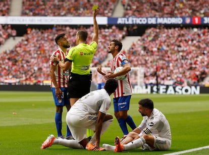 También parecían fuera de su alcance los centros laterales. Giuliano puso el siguiente y Le Normand remató de cabeza a la red por encima de Tchouameni. El incesante peligro del Atlético le caía encima a Courtois como al que abre el compartimento del avión nada más aterrizar después de un vuelo agitado.