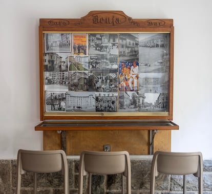 Josu es pelotari y se nota en el bar. En las paredes donde antes colgaban fotos suyas de pequeño jugando a pelota —“las quité porque me parecía muy egocéntrico”, confiesa riendo, aunque sí ha mantenido los trofeos— ahora hay un par de cestas y pelotas de cesta punta, además de cuadros de dantzaris —bailarines de danzas tradicionales vascas— y otros guiños a la cultura y los deportes vascos. El día de la entrevista, lleva puesta una sudadera del Alavés, pero asegura que en la tele del Benja no se emiten partidos de fútbol, sino de pelota. “Ahora he vuelto a competir en pelota, pero también he sido siempre muy futbolero y me gusta verlo, soy socio del Alavés. Pero también estoy un poco cansado de lo que representa el fútbol en general y creo que no me conviene el ambiente que genera en un bar, no es lo que busco. Prefiero darle visibilidad a un deporte minoritario que es el mío y que me apasiona”, garantiza.