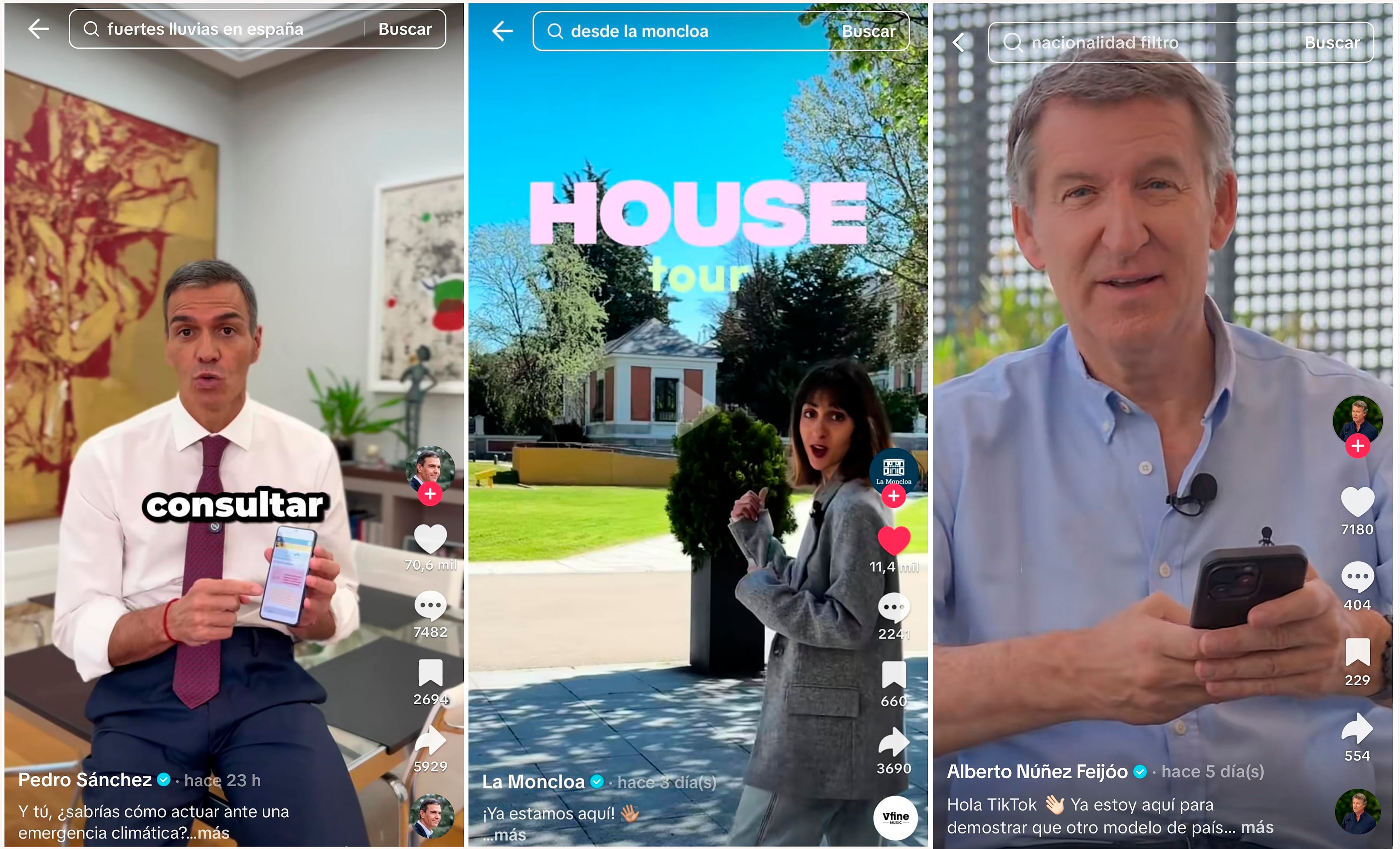 “¿Molesto mucho? Pues ahora me vais a tener aquí”. Así se presentaba el líder del Partido Popular, Alberto Núñez Feijóo, hace una semana en el vídeo con el que debutaba en su perfil de TikTok. El equipo de redes de La Moncloa se quedó sorprendido, más que por el mensaje, por el momento. Tan solo un par de días después, coincidiendo con el arranque del curso político, tenían previsto lanzar la propia cuenta de TikTok del presidente del Gobierno, Pedro Sánchez, y la oficial La Moncloa. La casualidad quiso que los dos partidos mayoritarios desembarcasen en esta red social a la vez. Fuentes del Partido Popular cuestionan esa sincronía: “Coincidencias en la política hay pocas”. Los protagonistas de la grabación de los socialistas, eso sí, visten manga larga y chaqueta, prendas que apuntan a que fue producido antes de verano.