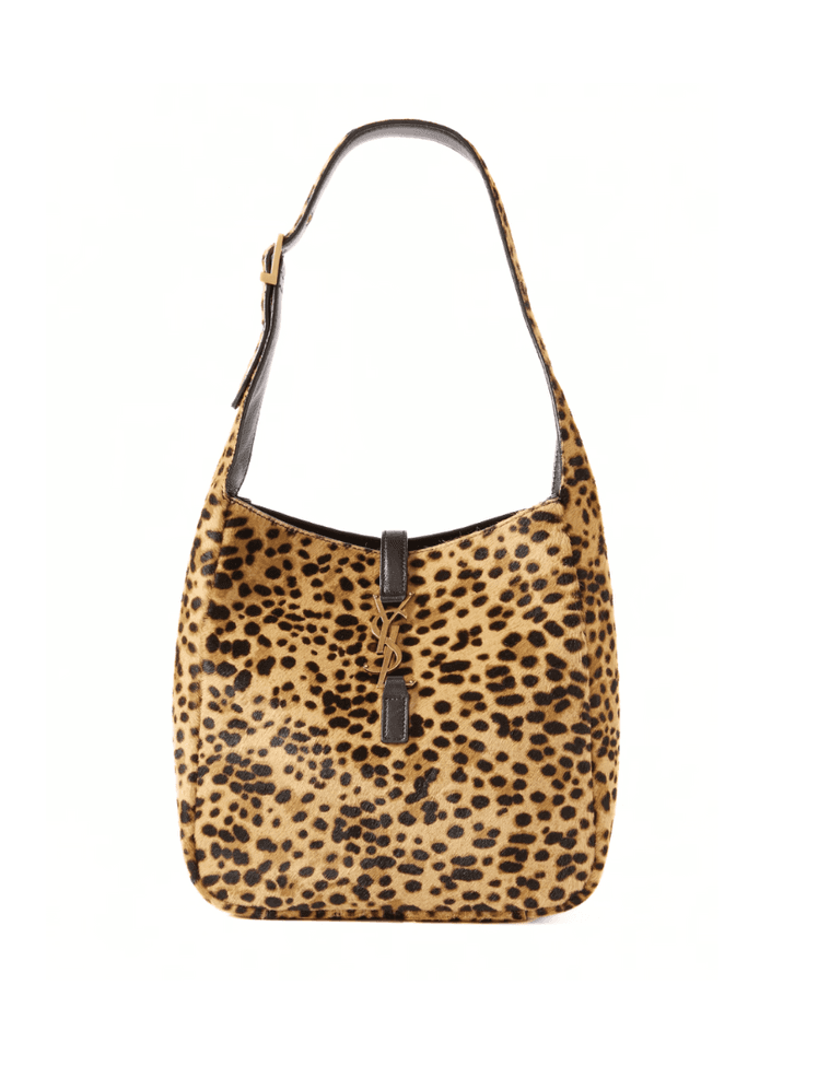Bolso de hombro con estampado de leopardo y logo de Saint Laurent en dorado.