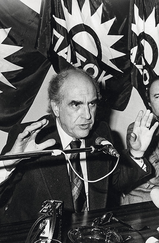 Paradójicamente, cuanto menos peso tenía el partido, más se asentaba la imagen irónica del Pasok como sinónimo de estabilidad y abundancia. Las fotos de Papandreu, fundador del partido y primer ministro durante 10 años, pasaron a formar parte de la iconografía habitual en los programas de humor de televisión y, sobre todo, en Facebook.