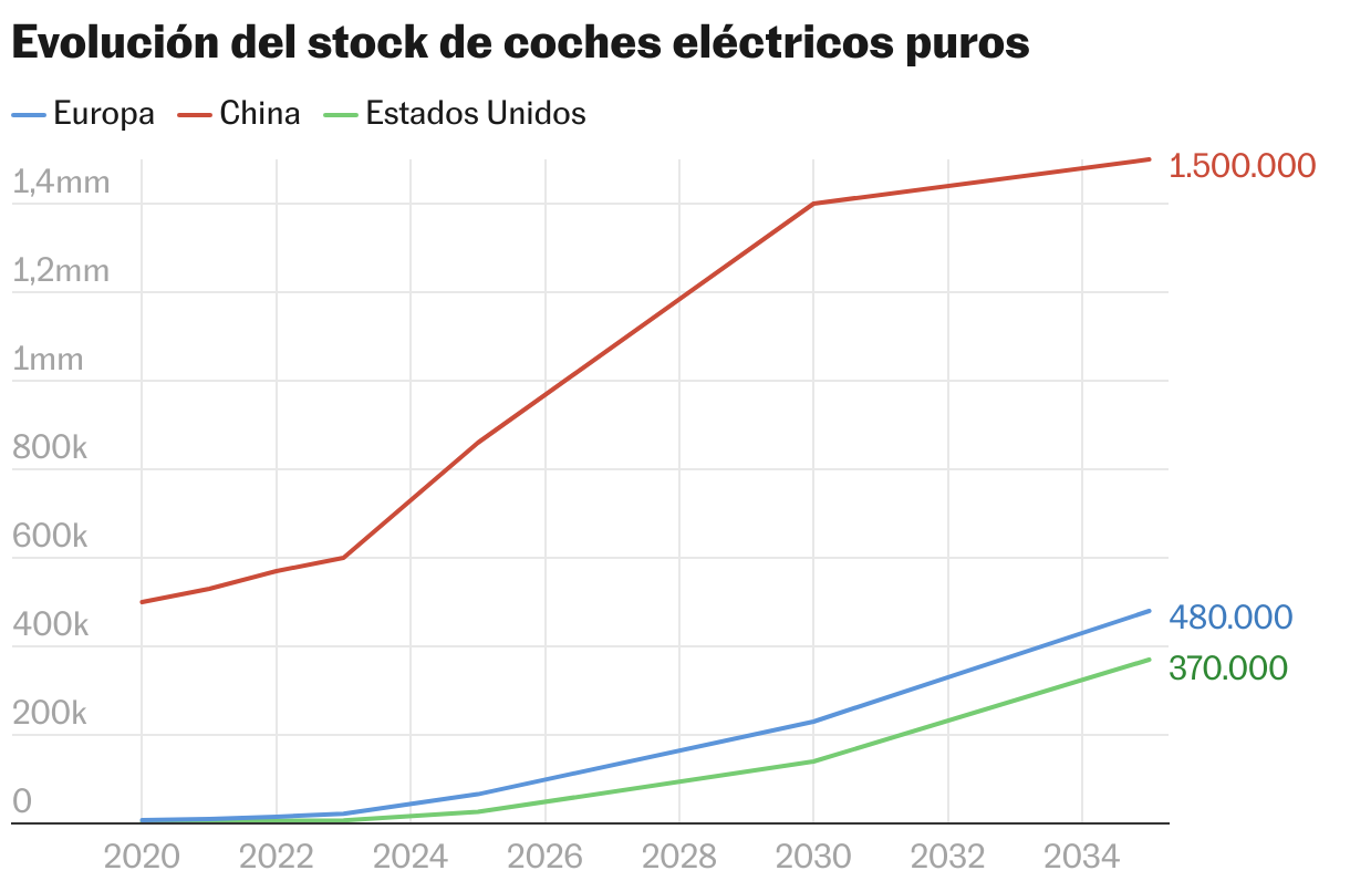 El sector tiene prisa porque, más allá de sus previsiones, Europa tiene marcado en rojo el año 2035, cuando se prohíba la venta de coches de combustión, aunque los fabricantes ya tienen que responder a multas de la Comisión Europea sino atienden a una paulatina reducción de las emisiones de CO2 en las ventas de sus coches. Y hay muchos deberes todavía por cumplir, según ha denunciado la patronal europea de marcas, ACEA. “Somos la única industria que se enfrenta a sanciones fijas si no se cumplen los objetivos de descarbonización de las carreteras. La UE y los Estados miembros no están sujetos a estas sanciones, pero comparten la responsabilidad de establecer las condiciones adecuadas para impulsar la adopción de vehículos eléctricos”, señala un portavoz, que denuncia la falta de puntos de recarga públicos —gran caballo de batalla del sector— o la falta de ayudas para la adquisición de vehículos.