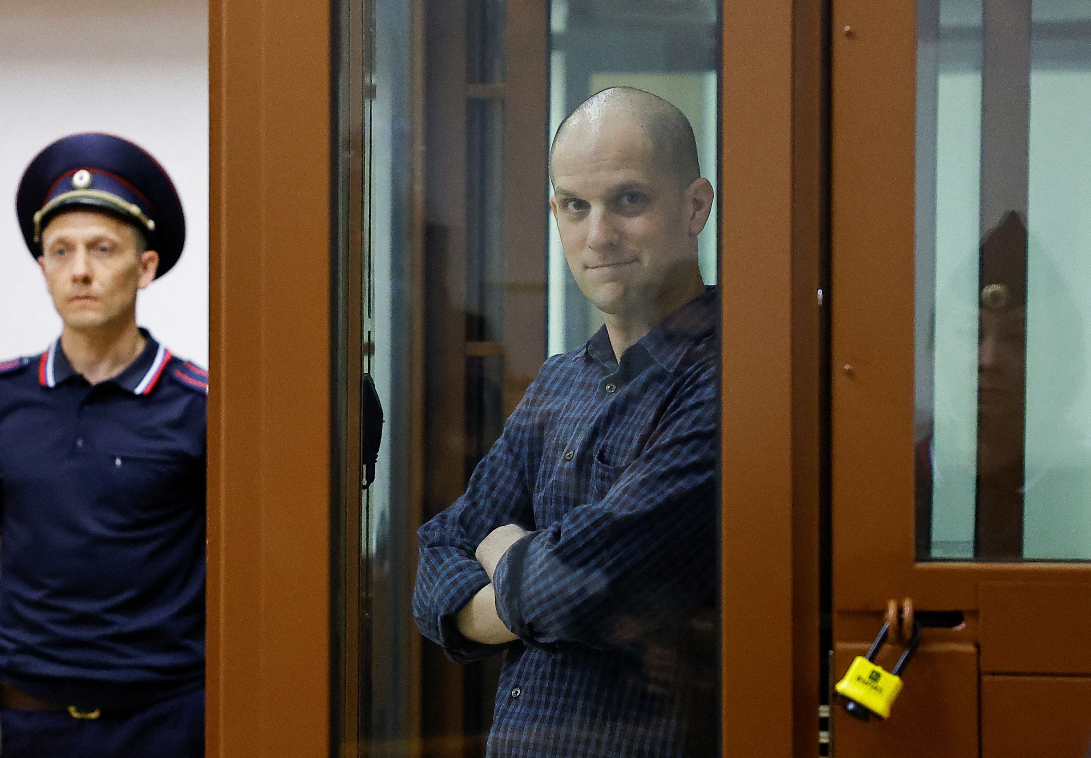 El futuro del corresponsal estadounidense en Rusia Evan Gershkovich, de 32 años, ha comenzado a dirimirse este miércoles en un tribunal de Ekaterimburgo, la ciudad que marca la separación de Rusia entre Europa y Asia. Con la cabeza afeitada y el rostro visiblemente agotado tras un año y tres meses de prisión preventiva, el periodista de The Wall Street Journal ha comparecido en la primera sesión de un juicio en el que podría ser condenado a 20 años de prisión. Los cargos se basan en la acusación de que supuestamente espió a Rusia cuando preparaba un reportaje para su periódico sobre la producción de tanques en el país en plena invasión de Ucrania. La Casa Blanca, sin embargo, teme que el régimen presidido por Vladímir Putin esté buscando simplemente una carta con la que intercambiar a sus agentes detenidos en el extranjero.