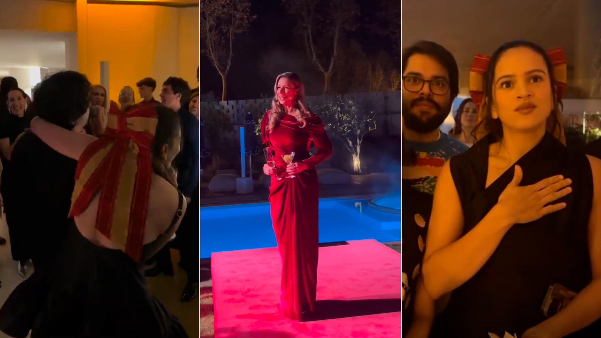 Una fiesta que ha dado para muchos comentarios en las redes sociales, y otro de los momentos vividos la última noche del año en la casa de los directores tiene nombre propio: Anne Igartiburu. La presentadora, que durante años ha dado las Campanadas en TVE desde la Puerta del Sol, despidió el año de la mano de Los Javis y fue la encargada de dirigir las uvas. La presentadora, enfundada en un ceñido vestido de terciopelo rojo de Lorenzo Caprile, apareció para sorpresa de los invitados para orquestar la toma de las 12 uvas, con la ayuda de un reloj proyectado, y así hacer un guiño a su extensa carrera en televisión. “Este año va a ser el año de dejar a ver qué pasa”, anunció frente a su público privado de estrellas antes de proceder, como maestra de ceremonias de la noche, a la retransmisión de los últimos segundos de 2024.