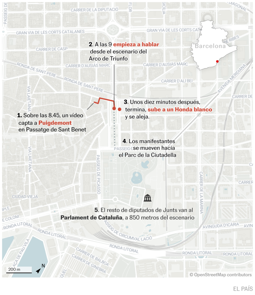 Pero aunó la suficiente retranca táctica como para convertir su trasterramiento en exilio. Para considerarse president legítim pese a haber votado a sus sucesores, el vacuo Quim Torra y el digno Pere Aragonès. Para proclamarse demócrata incorruptible, pero cultivando al tiempo al pretendiente carlista. Para desnaturalizar su defensa de las instituciones catalanas mediante una contraprogramación a la investidura de Salvador Illa: este desacato al Parlament —con reminiscencias al Capitolio de Washington, en versión pacífica y menestral— cuando se disponía a nombrar a un rival quizá convertido en peligro porque jamás se avino a implorarle apoyo en la ruta de Waterloo, pero defendió amnistiarlo.