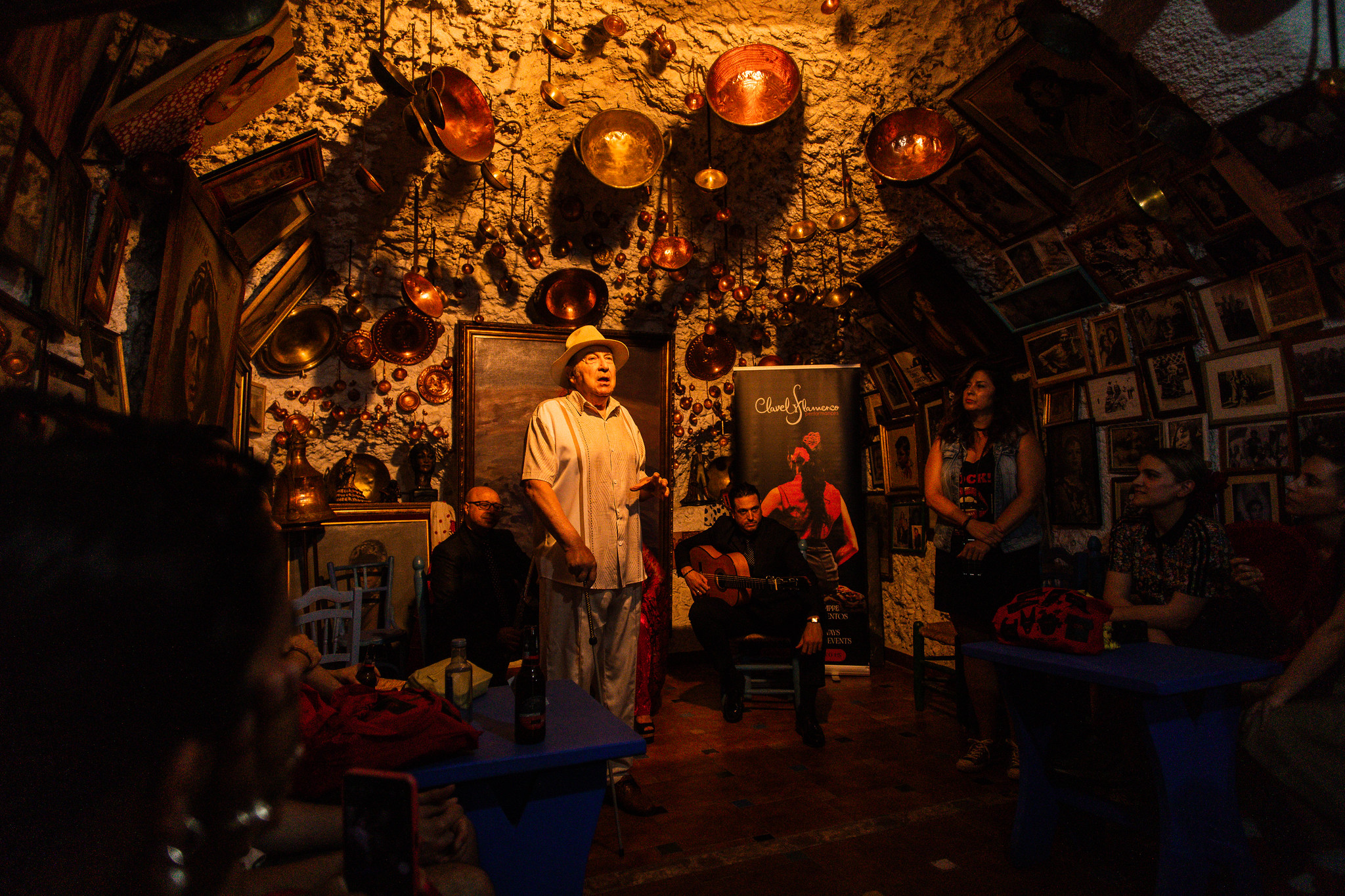 Como parte de la exclusiva propuesta para aunar cultura, arte y música, la ruta del Soundhood SON Estrella Galicia tuvo espacio para conocer un mágico enclave del Sacromonte: una cueva convertida en la casa –es lo habitual en el barrio desde comienzos del siglo XX– de Curro Albaicín, bailaor, poeta y memoria viva del Sacromonte. “Fui un niño muy rebelde que luchó por la democracia”, dice desde el final de la estancia, cuyas paredes están repletas de fotos de algunas de las 12.000 familias gitanas que vivieron en el barrio antes de la expropiación que sufrieron durante el franquismo.