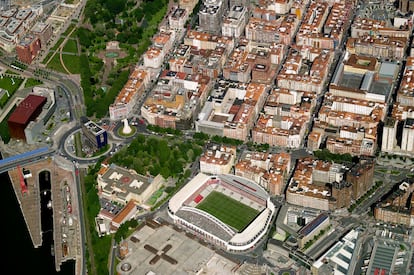 Una tarde cualquiera de hace unos días quedé con un amigo en la explanada frente al actual San Mamés, ese lugar donde se encontraba el viejo estadio, ese hueco en la ciudad, esa ausencia arquitectónica. Mi colega me hizo esperar y, quién sabe si por el ambiente, el color del atardecer en el cielo o el mismo espíritu del lugar, me atacó la nostalgia. Qué digo me atacó. Me metió un gol por toda la escuadra y dos de chilena. Me goleó la añoranza. De pie sobre la tira de piedra blanca que indica en la explanada dónde se ubicaba la línea de meta de la portería de Misericordia del viejo estadio, me imaginé a Iribar, a Zubizarreta, a Biurrun, viendo el juego desde ahí y a mí de niño junto a mi abuelo en la grada. Pensé en las líneas trazadas por los jugadores de campo: los desmarques, los regates, los disparos a puerta, los goles celebrados en la grada y los lamentos de los partidos perdidos. Pensé, como la canción de Silvio, ‘¿a dónde fueron a dar todos esos momentos? ¿Acaso se van? ¿Y a dónde van?’